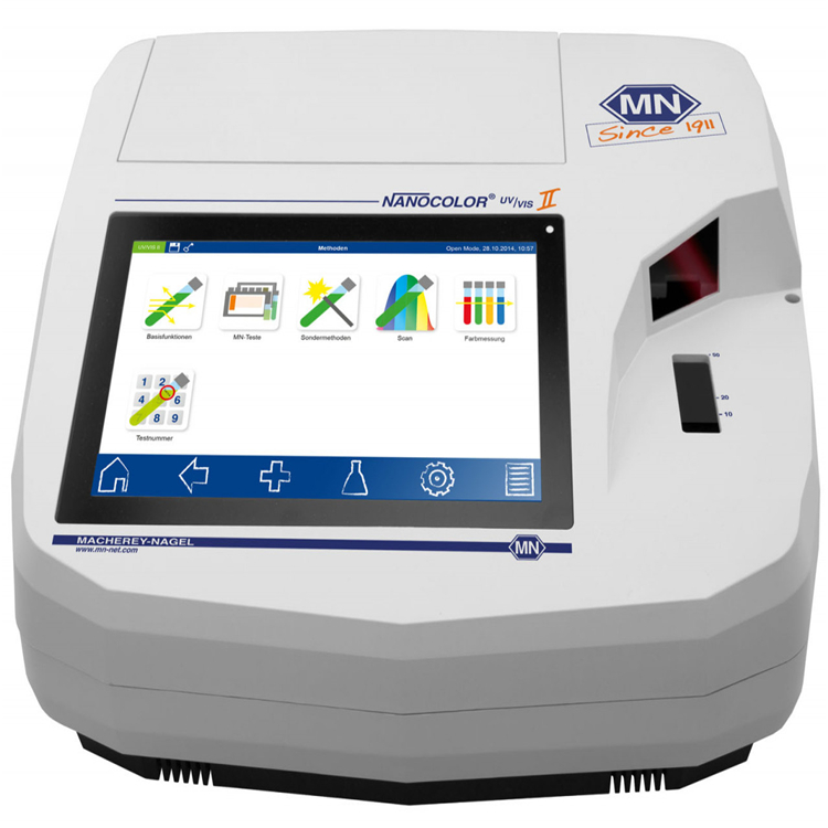 nanocolor vis ii 和 nanocolor uv/vis ii 是高精度测量仪器,适用于水和废水分析的所有领域。macherey?nagel通过这两款新型分光光度计彻底改变了日常实验室工作,将高科技仪器与出色的可用性相结合。凭借其直观、基于图标的菜单指导,这些创新的光度计可以像智能手机或平板电脑一样使用。清晰排列的高分辨率触摸屏显示使您的日常测量程序成为真正的乐趣。